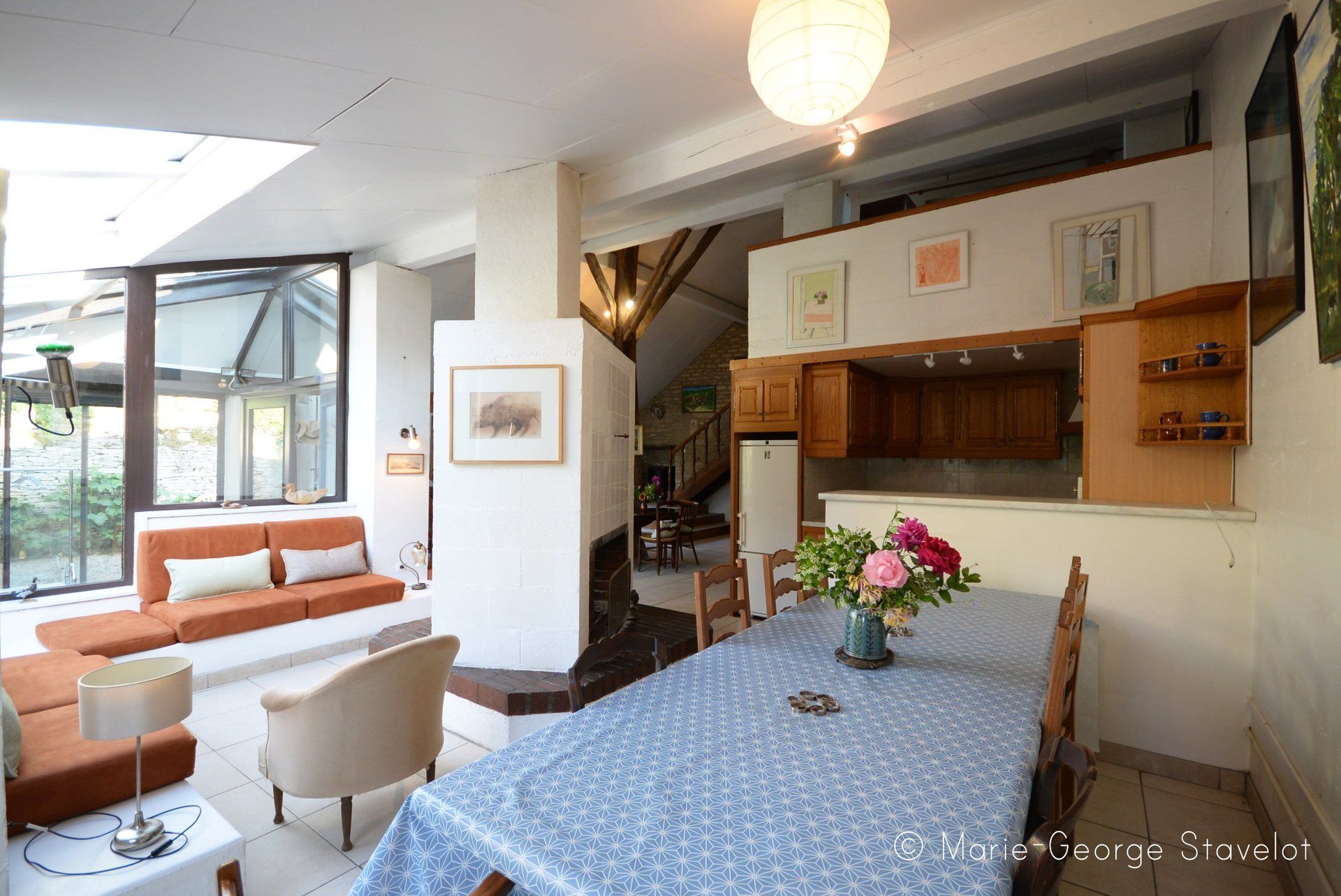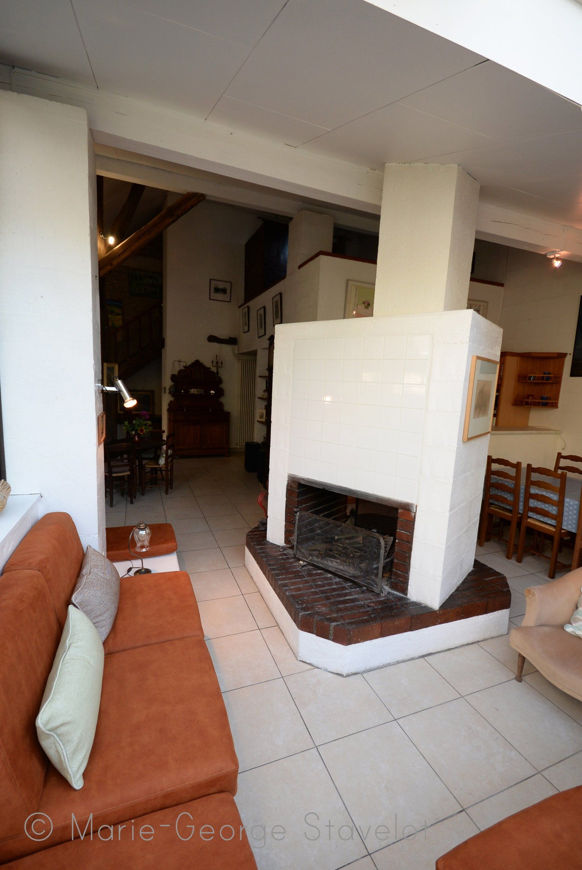 Quoi de plus agréable qu'un bon feu dans cette cheminée double foyer au centre de la pièce de vie